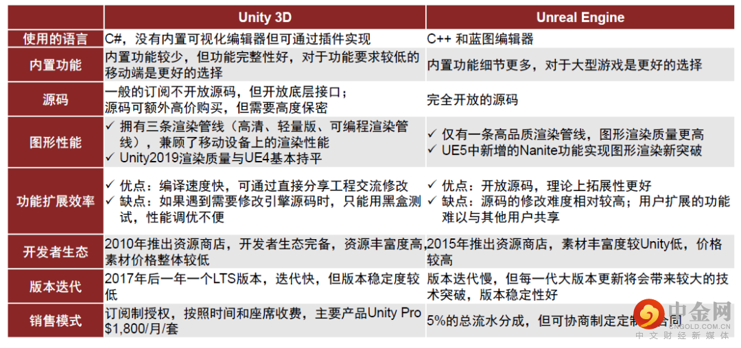 图表:Unity和虚幻引擎的对比