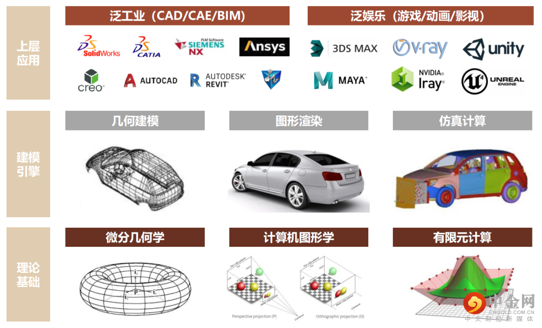 图表:广义的建模引擎涵盖几何建模、图形渲染、仿真计算的范畴,支撑泛工业及泛娱乐场景应用