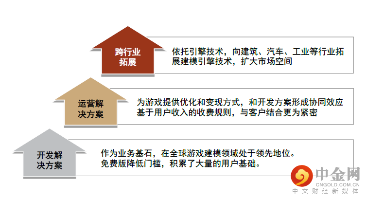 ►开发解决方案指的是创建、编辑、运行和部署实时2D和3D内容的方案,主要产品为游戏引擎和辅助工具,同时还包括建筑、汽车等其他行业的建模引擎工具。开发解决方案的产品分为免费版和付费版,付费方式主要为按照月度进行软件授权。