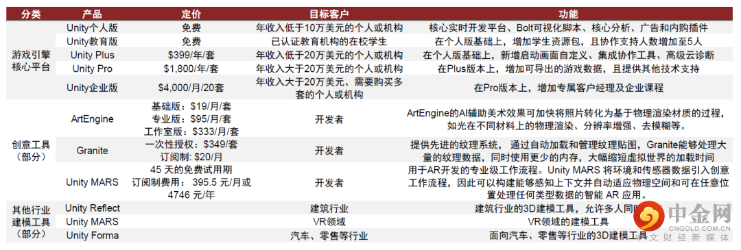 资料来源:Unity官网,公司招股说明书,中金公司研究部