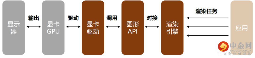 图形渲染引擎调用底层硬件资源,实现3D对象在计算机显示上的绘制呈现。在实际应用中,3D对象在计算机显示器上的绘制呈现需要调用一系列软硬件资源,通过完整的图形渲染流程来实现,其中图形渲染引擎(或称图形渲染器)是其中的核心软件组件。在图形渲染的过程中,渲染引擎承接由应用(游戏、动画)提出的渲染任务,对渲染任务和相关数据进行处理;并通过图形API对接显卡驱动,进而调用显卡GPU的计算资源进行图形的计算渲染;GPU渲染完成后再将图像画面输出给视频控制器,并最终在计算机屏幕中进行呈现。