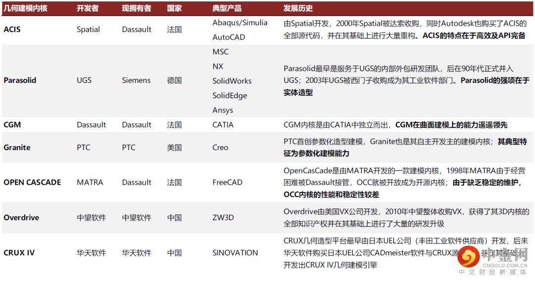 图表:海外主流三维几何建模引擎以及国内厂商所有的引擎概览