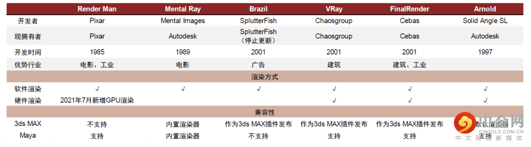 图表:行业内主流离线渲染器概览