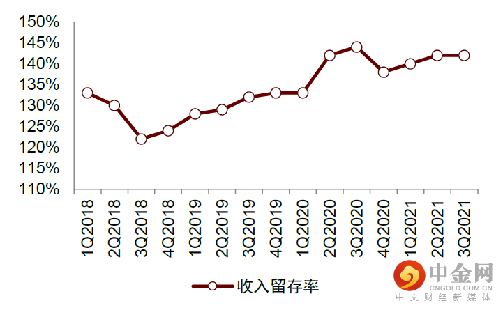 图表:Unity收入留存率(NDR)