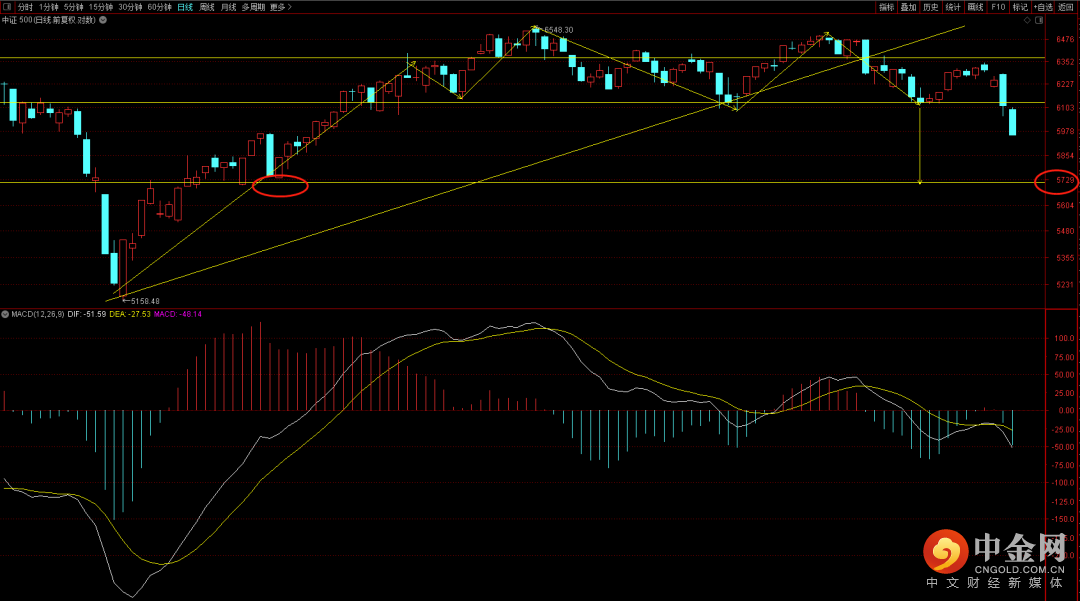 中证500跌破颈线位,短期第一支撑大概率会出现在5729附近,在没有跌到位之前需要谨慎对待中间的反抽行情。