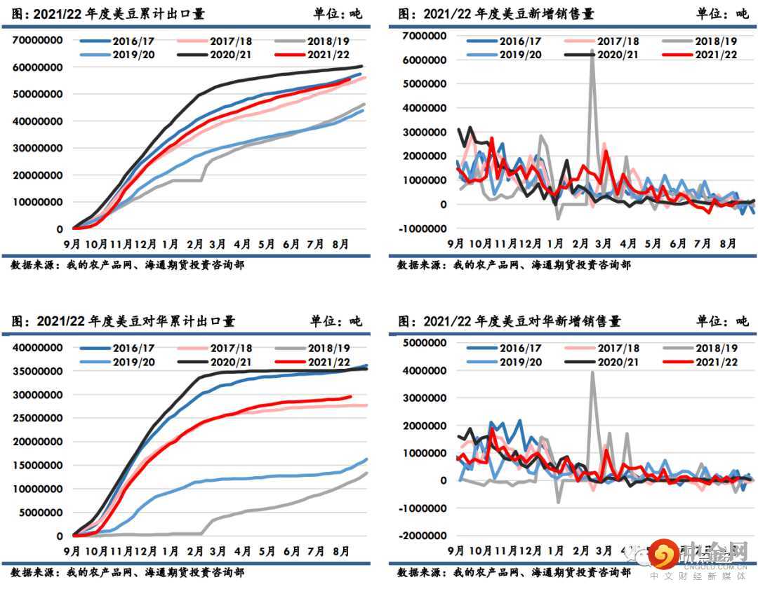 9月中下旬巴西新作将进入播种阶段,阿根廷则要待到11月, NOAA预测在北半球的秋冬季,有一定风险南美产区会出现极端天气,因此USDA对于南美大豆丰产的预期是否能兑现尚需时日验证。