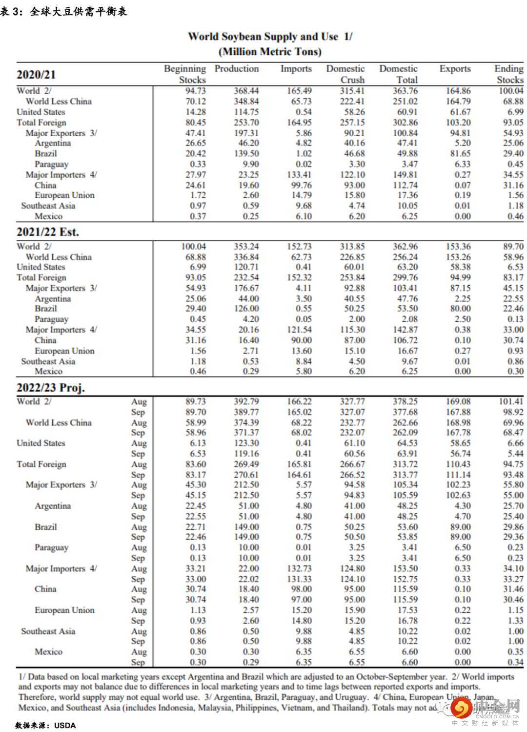 1.2 南美大豆供需平衡表