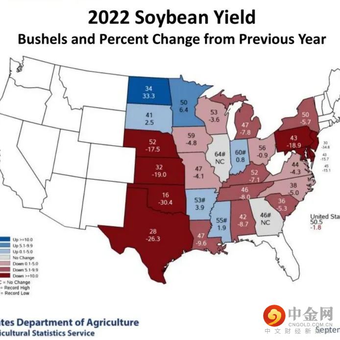 美国农业部(USDA)于9月12日公布了本月供需报告, 2022/23年度美豆面积以及单产都遭超预期下调,报告意外利多,美豆价格也在报告发布后由1415美分左右的位置上涨至1485美分。