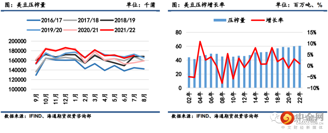 南美方面,USDA本月并未对2022/23年度巴西和阿根廷大豆的产量数据进行调整,维持了1.49亿吨和5100万吨的预估。另外,巴西新作的压榨数据上调至5050万吨,阿根廷新作出口上调至470万吨。