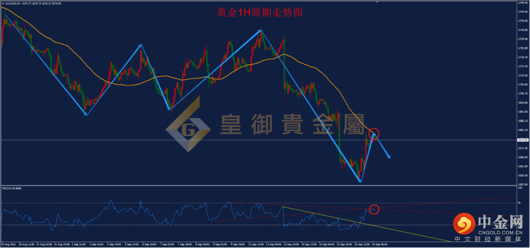 从黄金1小时周期图来看,上周五黄金在1小时级别RSI底背离,15分钟、30分钟、1小时级别MACD底背离等的共同加持下,出现探底回升,但从日线级别看,黄金仍未改下跌趋势,目前上涨受制于60日均线,指标上看,1小时RSI前期压制线也对行情有较大阻力,同时15分钟MACD出现顶背离,预计短期反弹即将结束,行情有望再度转为下行,今日可继续保持空头思路。