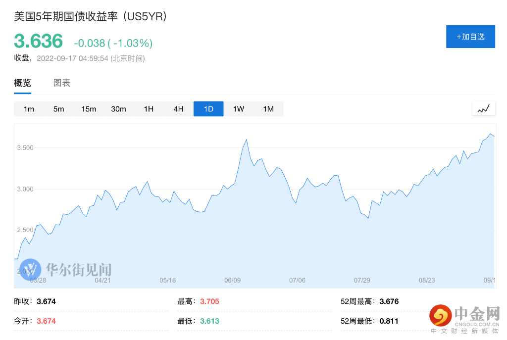 当前美国的失业率为3.7%,5年期美国国债收益率为3.63%。按照高盛最坏预期,5年期美国国债收益率可能达到5.45%。