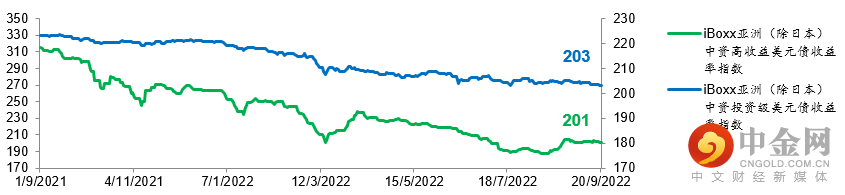 iBoxx亚洲(除日本)中资美元债收益率指数过往一年的走势