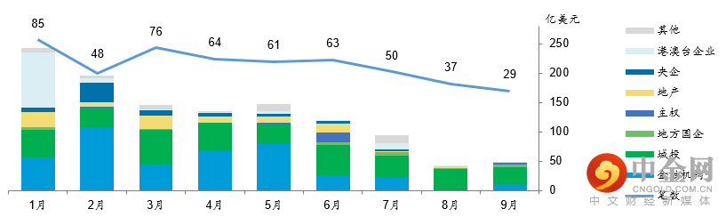9月16日,厦门象屿集团有限公司担保发行3亿美元3年期高级无抵押固息债券,票面利率5.7%,发行收益率为5.7%,债项评级为BBB+(联合国际)。