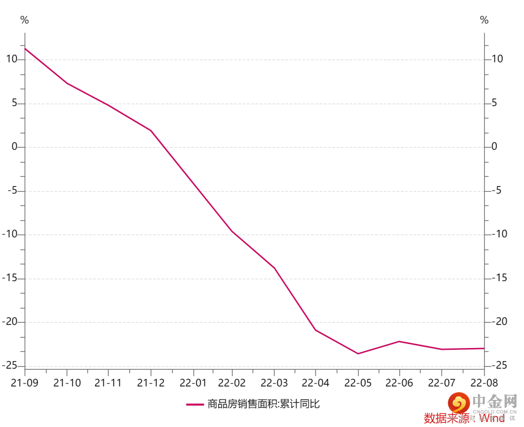 销售面积累计同比下降23%,与7月基本持平。