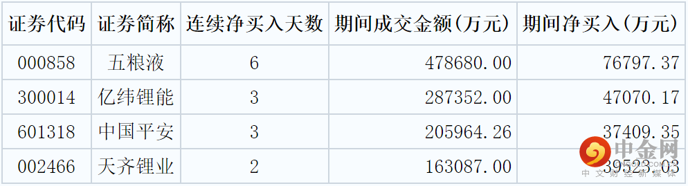 9月19日上榜深股通、沪股通成交活跃榜个股中,4股获北向资金连续净买入,分别是五粮液、亿纬锂能、中国平安、天齐锂业。