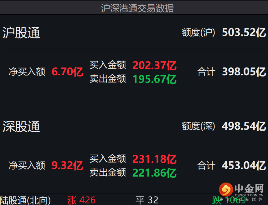 其中沪股通净买入6.7亿元,深股通净买入9.32亿元。