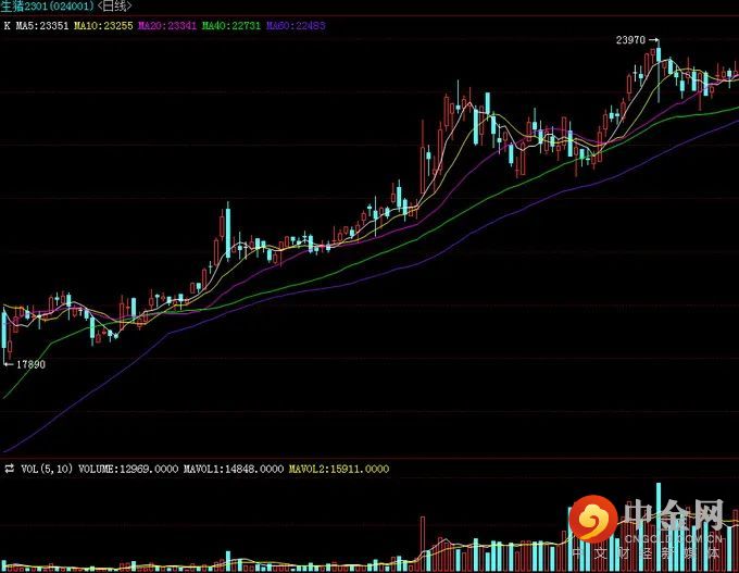 上周主力01合约受到中秋行情提振,生猪合约偏强整理,周内最高点在周五23620,最低点在周四23080。