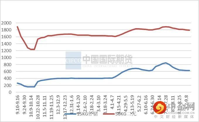 目前,中秋虽已过去,但现货大幅回调尚未出现,现阶段供给偏紧局面尚未改变,肥标价差继续加大,四季度需求转好预期促使压栏和二次育肥,导致现货价格得到进一步支撑。