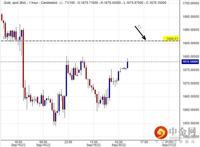可以部署在$1,686美元左右建立淡仓盘,短线看淡金价一线至$1,659美元水平后止赚,止损在$1,694美元。