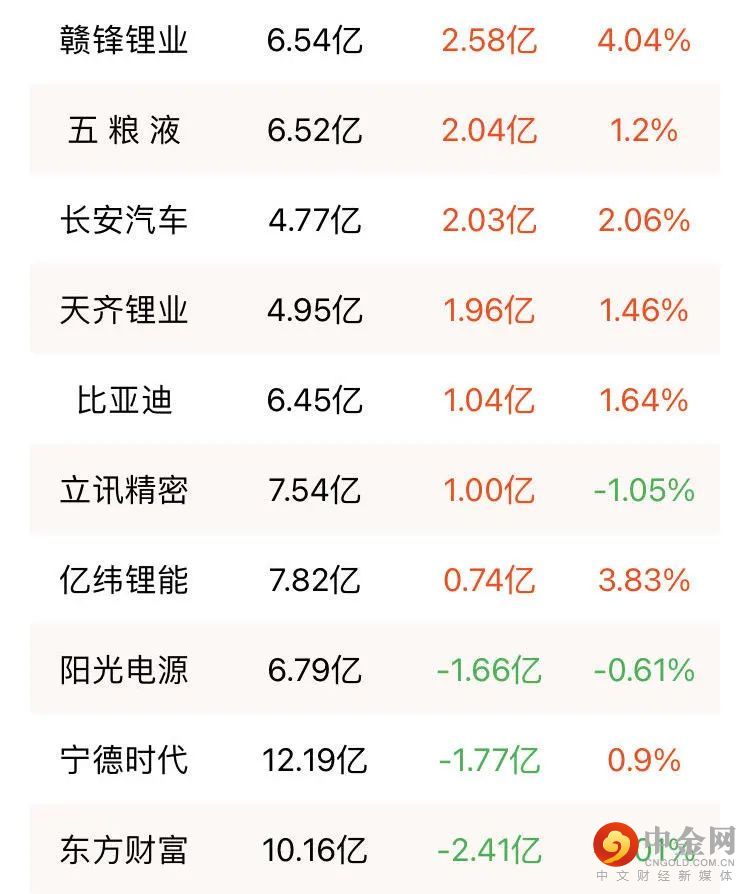北向资金9月19日净买入16.03亿元,其中赣锋锂业、五粮液、长安汽车分别获净买入2.58亿元、2.04亿元、2.03亿元;东方财富净卖出额居首,金额为2.41亿元。