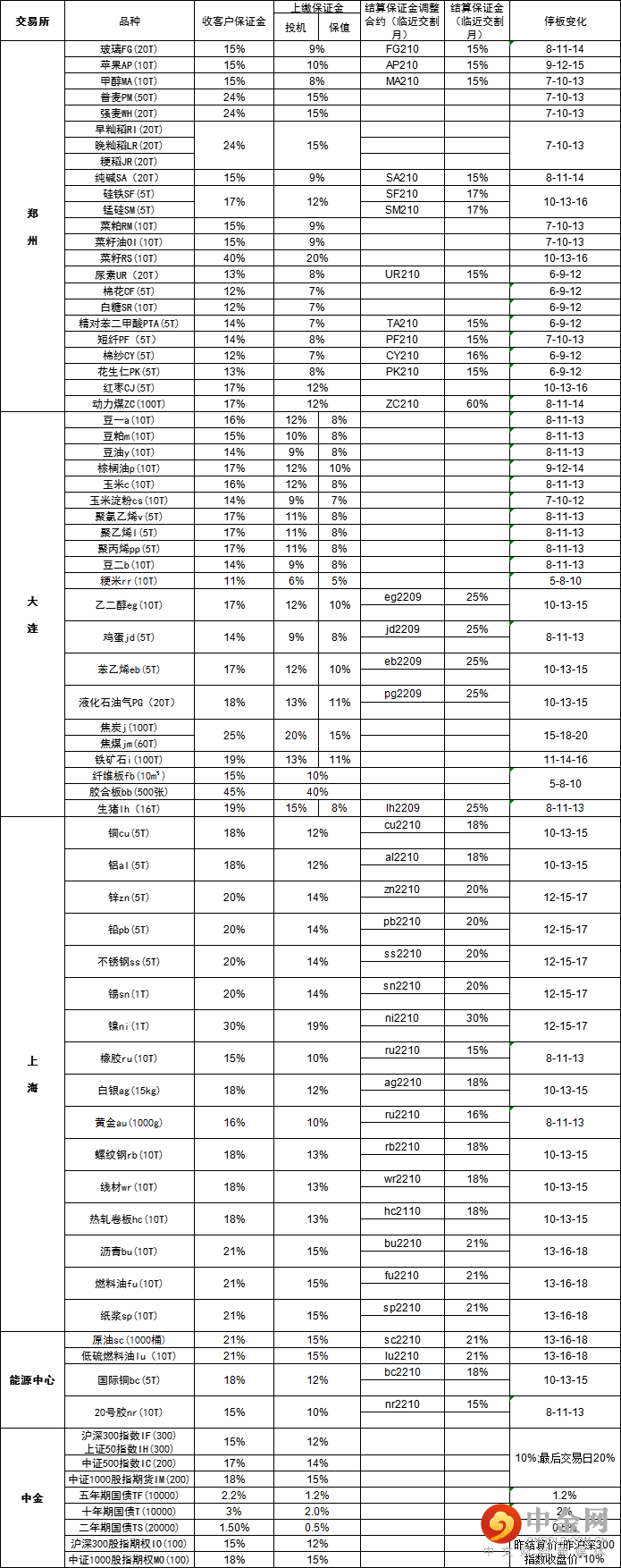 日常及临近交割月保证金收取标准
