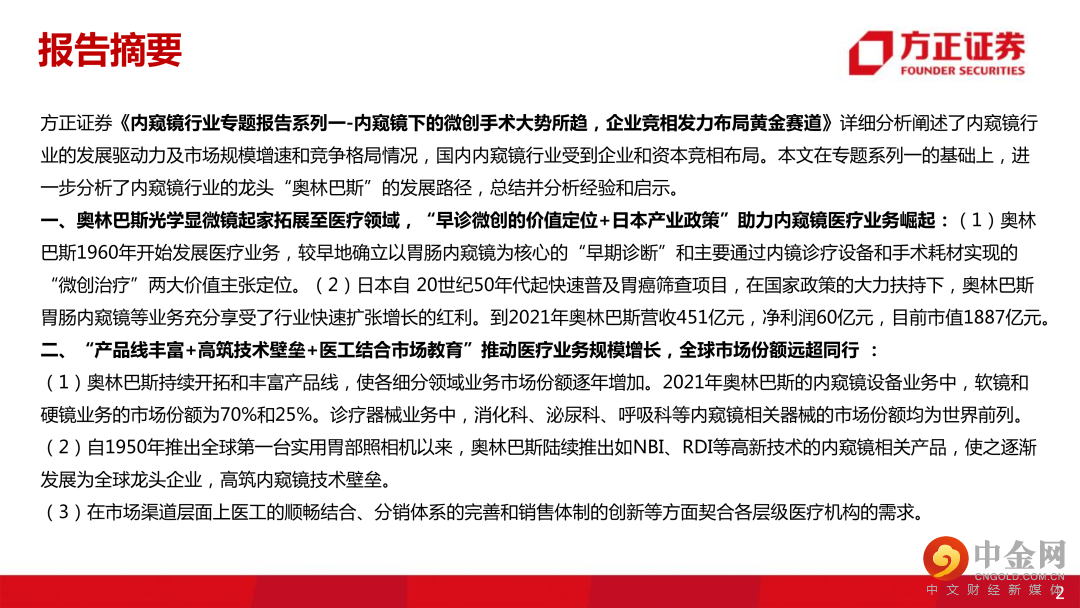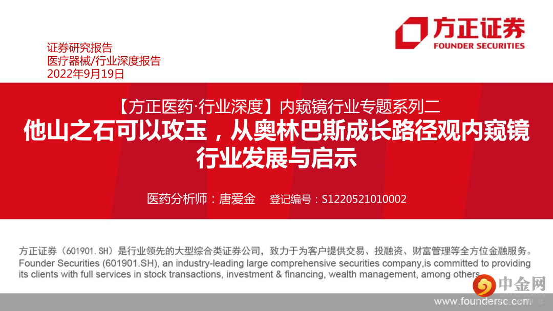 本文来自方正证券研究所于2022年9月20日发布的报告《内窥镜行业专题系列二:他山之石可以攻玉,从奥林巴斯成长路径观内窥镜行业发展与启示》。