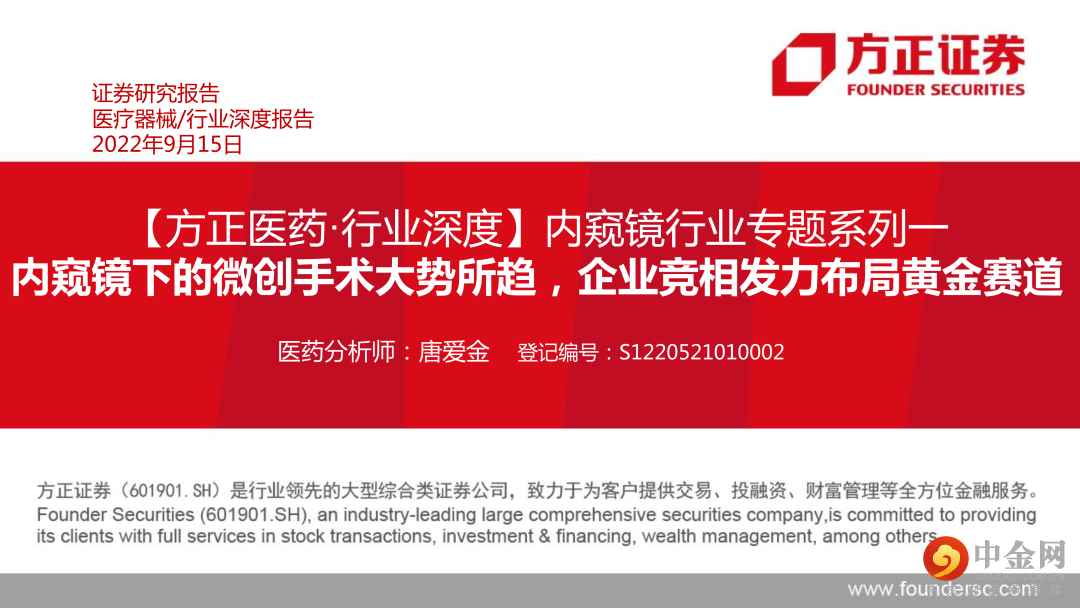 本文来自方正证券研究所于2022年9月15日发布的报告《内窥镜行业专题系列一:内窥镜下的微创手术大势所趋,企业竞相发力布局黄金赛道》。