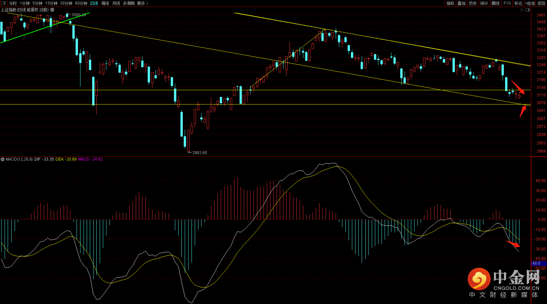 大盘跳空低开后向上回补了缺口,短期有构筑底部信号的迹象,关注前期平台3049到3069区间支撑,大概率可以考虑在这个平台进行逢低布局。而就这三天而言大盘每天的高点都在递下,后续观察是否能够出现突破这种困局,一旦突破就有希望反弹至3148到3173这个区间。