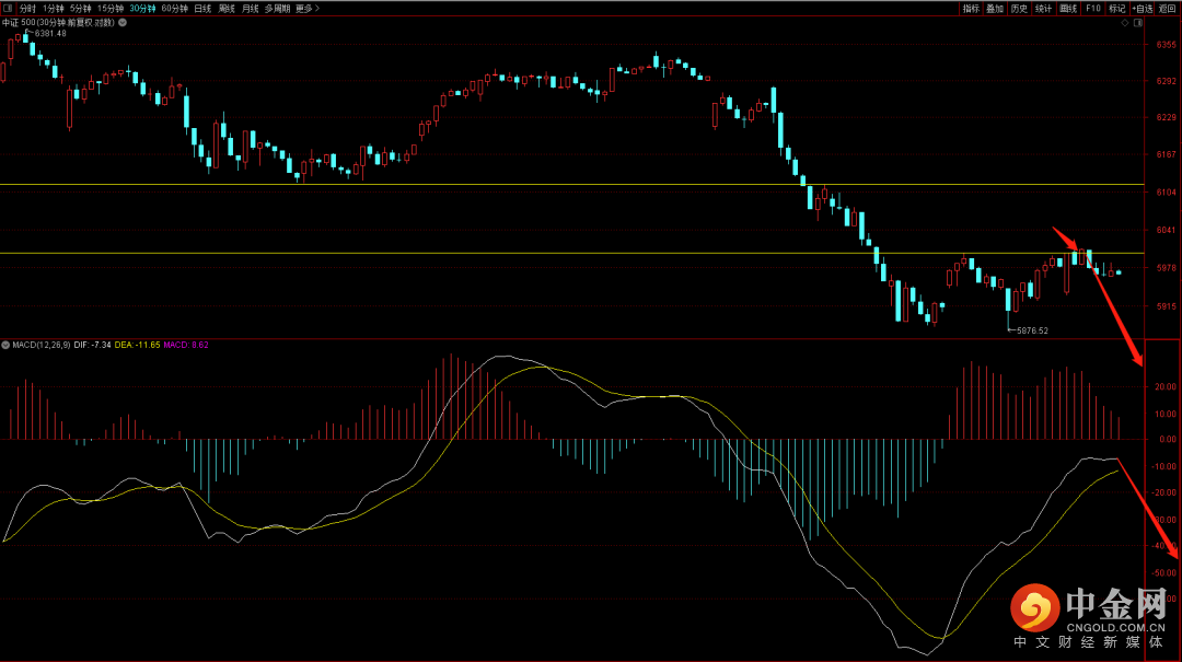 中证500短期突破失败,大概率会再次向下,关注5915点支撑是否跌破,一旦跌破就有再次新低的概率出现,日线已出现底分结构,如果再次向下不破新低可以考虑逢低轻仓布局。