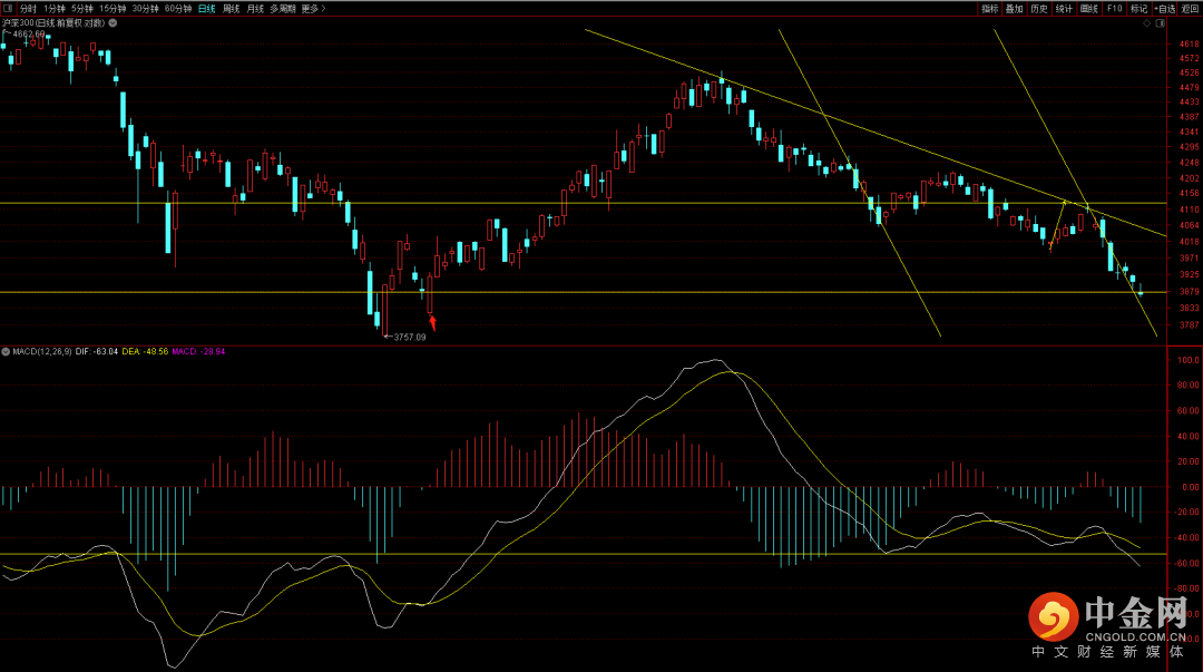 沪深300继续扩张下跌中,目前跌破了前期中阳中位线,短期需要继续耐心等待,有冲高结构需要注意逢高出局,大概率会再次向下跌破前期3757点低点。