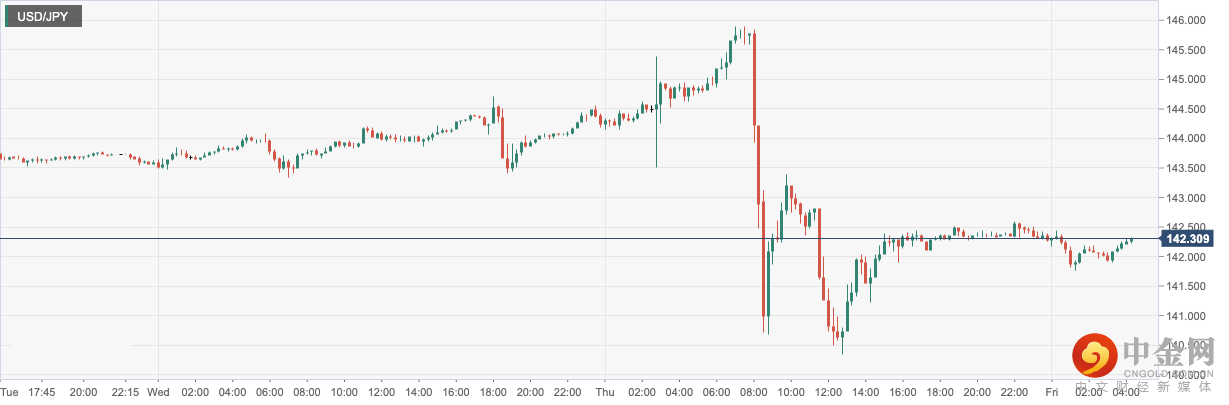 美元兑日元周四收盘大幅回落后,今日开盘盘整在142.30附近,由于日本货币当局干预外汇市场,自1998年以来首次支撑受打击的本国货币后,使得日元全面劲升。