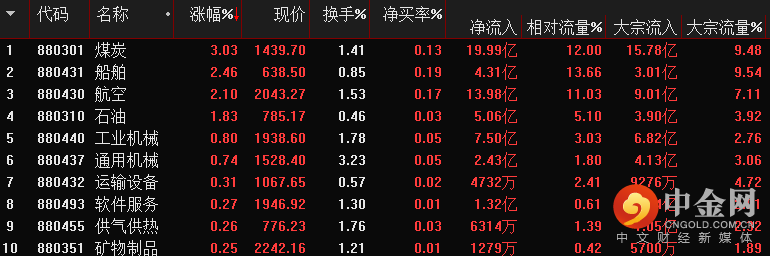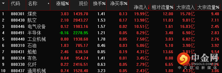 板块资金进出排名