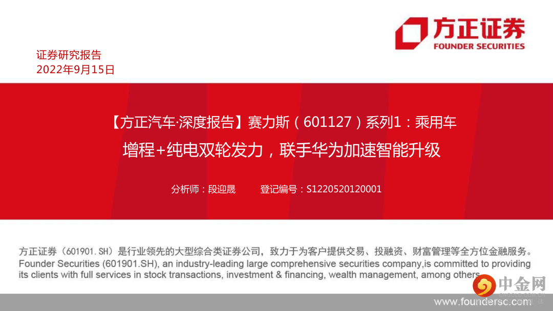 本文来自方正证券研究所于2022年9月18日发布的报告《赛力斯:增程+纯电双轮发力,联手华为加速智能升级》,欲了解具体内容,请阅读报告原文。