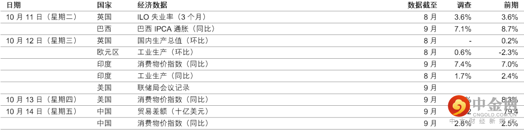 预期9月份美国消费物价指数通胀将进一步回落至按年8.1%(同比),受惠于汽油价格下跌。但由于租金通胀上升,核心通胀可能稍为回升,这抵销了春季以来二手车价格的重大跌幅。如核心通胀高于预期,将可能提高FOMC(联邦公开市场委员会)在11月份的下次会议上,再次加息75个基点的可能性。