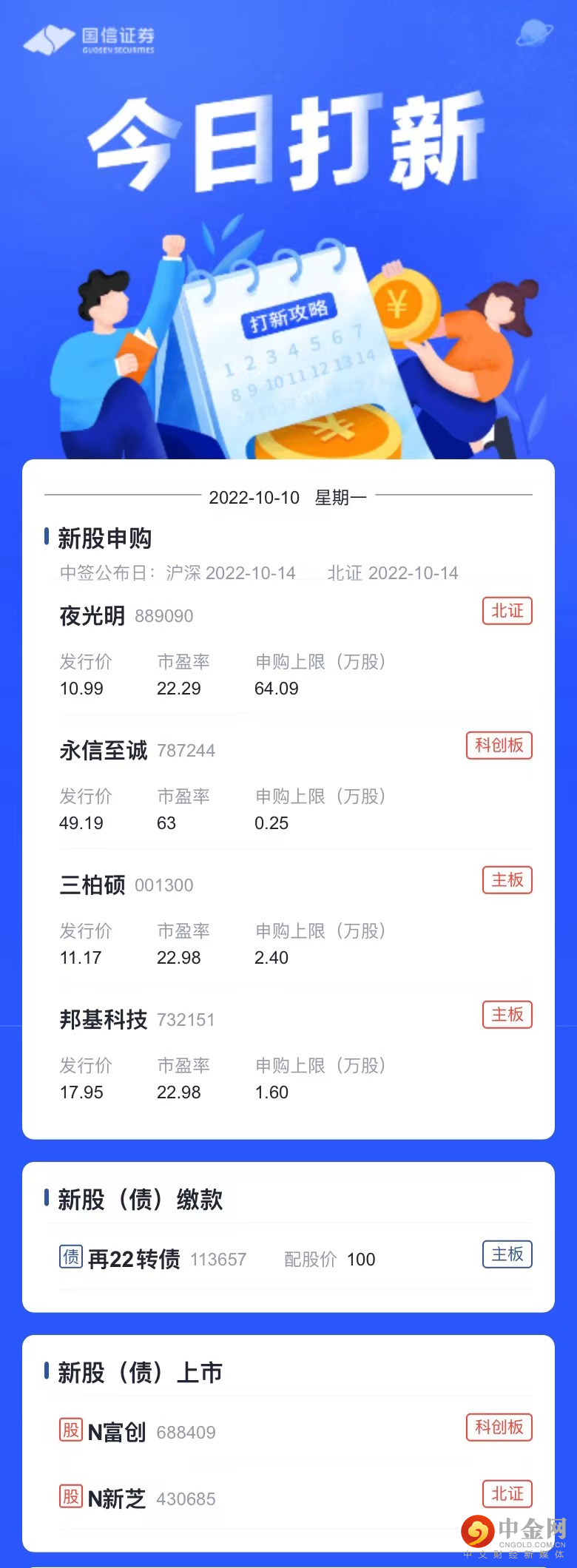 温馨提示|10月10日新股、新债提醒