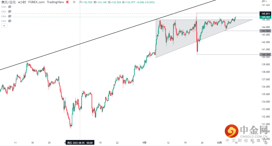 随着日元大幅贬值,日本央行干预汇市。在美元/日元逼近145.90时,