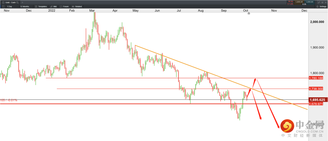 黄金在10月的第一周从底部1615企稳反弹,反弹幅度超100美金。而从结构上看,黄金价格仍处于下跌趋势中。上周五的美国失业率意外降至3.5%,市场鹰派预期升温打压了黄金的走势,失守1700。从当前趋势看,黄金价格仍以逢高看空的策略处理,上方阻力参考1740,若出现超预期反弹则关注1780附近。反之,若价格再次失守1680,则参考右侧追空策略。