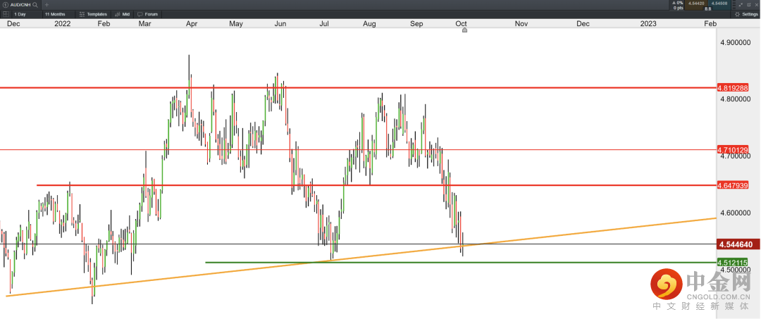 澳元兑离岸人民币AUD/CNH —— 日线图