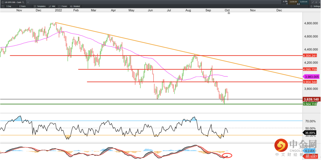 标普500指数在10月3日触及2020年11月以来低点3560后呈现反弹,但由于上周五美国的就业数据意外利好,劳动力市场仍然呈现强劲状态,导致美联储仍有足够的底气进行强硬的加息,打压了美股走势。本周美股将接受美国9月通胀数据的考验,当前市场预期核心CPI仍有走高的风险,因此美股可能会出现二次下探的风险。
