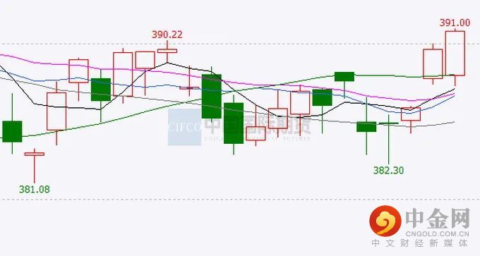2022年9月,沪金期货主力合约呈箱体震荡的走势。9月初走势偏强,先下探至全月最低点381.08元/克,随后反弹,至13日触及本月次高点390.22元/克;之后小幅偏弱震荡,至27日触及本月次低点382.30元/克,随后再度转强,至本月最后一个交易日(30日),达到触及本月最高点391.00元/克,当日收盘价为390.82元/克(见图1),较上月最后一个交易日(8月31日)收盘价386.92元/克,微涨约1.00%。