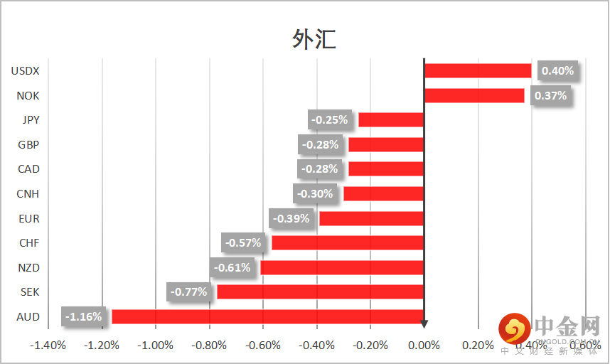美元指数持续走强,澳元延续颓势领跌G10货币,美元/日元站稳145。尽管中国央行周一调高人民币中间价,但美元兑人民币延续升势收于7.15上方。