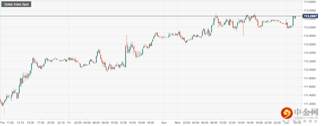 美元指数周一收盘微幅上升后,今日开盘涨至113.26附近,为连续第四个交易日上涨,本周晚些时候美国公布的通胀数据可能显示世界最大经济体的价格压力仍居高不下,使美联储的激进货币政策将持续到明年。