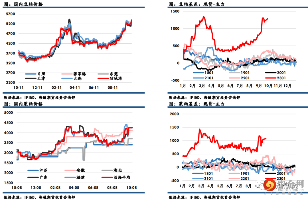 豆粕主力收盘4093元,下跌11元,跌幅0.27%,菜粕主力报收3177元,下跌35元,跌幅1.09%。沿海区域油厂主流报价在5300-5410元/吨,广东5410元/吨涨90元/吨,江苏5320元/吨涨70元/吨,山东5300元/吨涨100元/吨,天津5350元/吨涨100元 /吨。国庆期间,美盘大豆持续走低,两粕跟随波动。国内豆粕现货价格继续走高,且美国密西西比物流困难,导致美豆出口放缓,或进一步加剧国内供应紧张局面。密西西比河水位偏低导致单船载重下降,驳船供应紧张,运费飙升至创纪录高点。根域天气预报判断水位较难很快恢复。国内方面,10月的大豆进口可能降低至较低水平,进一步分化内外盘面,由于缺乏供应,蛋白粕将延续强势格局至供给端出现边际修复。