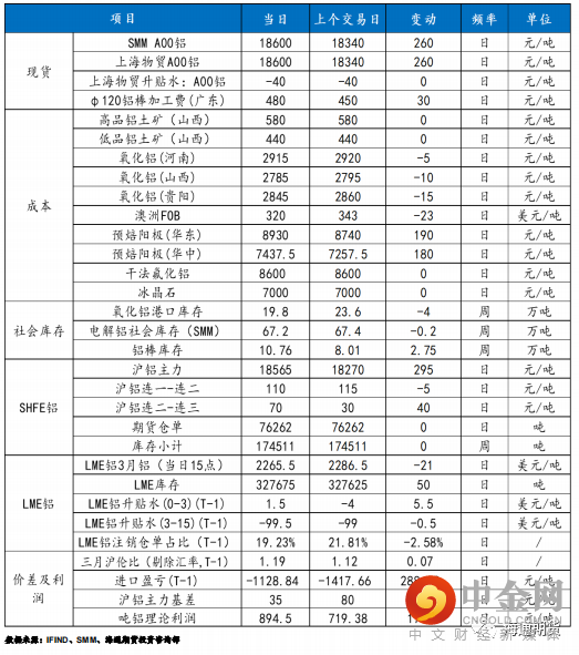 沪铝震荡偏强,主力合约 2211 收盘涨 285 元至 18565 元/吨,涨幅为 1.56%;当日 15:00 收盘伦敦三月铝报价 2265.50 美元/吨。现货方面,华东地区成交集中在 18580-18620 元/吨,现货升贴水维持在贴水 40 元/吨水平;中原(巩义)地区成交集中在 18530-18570元/吨,现货升贴水较节前走扩 90 元至贴水 90 元/吨,交易氛围一般,贴水有走扩趋势,整体上下游询价比较积极,但成交不够活跃,以贸易商之间流转为主。产业方面,截止 10 月 10 日国内铝锭社会库存 67.2 万吨,较节前增加 5.3 万吨,较 10 月 8 日下降 0.2 万吨。