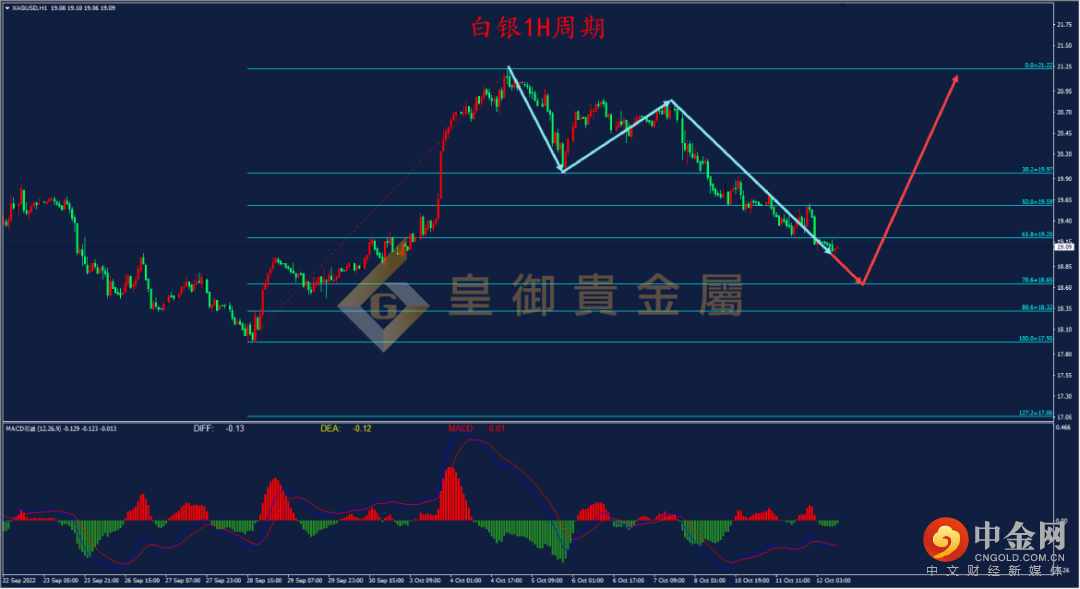 白银昨日整体走势偏弱,再次刷新本轮下跌低点。从1H周期走势结构看,白银在21.22附近下跌,走出3波下跌结构,目前已跌破黄金分割线0.618位置,后市或向0.786位置靠拢,操作上可继续关注空单机会。结合MACD指标来看,DIFF线与DEA线处于零轴下方,表明空头力量偏强。日内操作可参考上方压力线19.20附近尝试空单,目标下看18.65附近。白银跌至关键支撑后可择机做多。