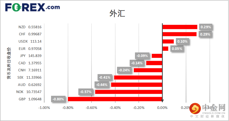 美元指数连续第五天收涨,澳元和加元分别触及2020年4-5月以来的最低水平。