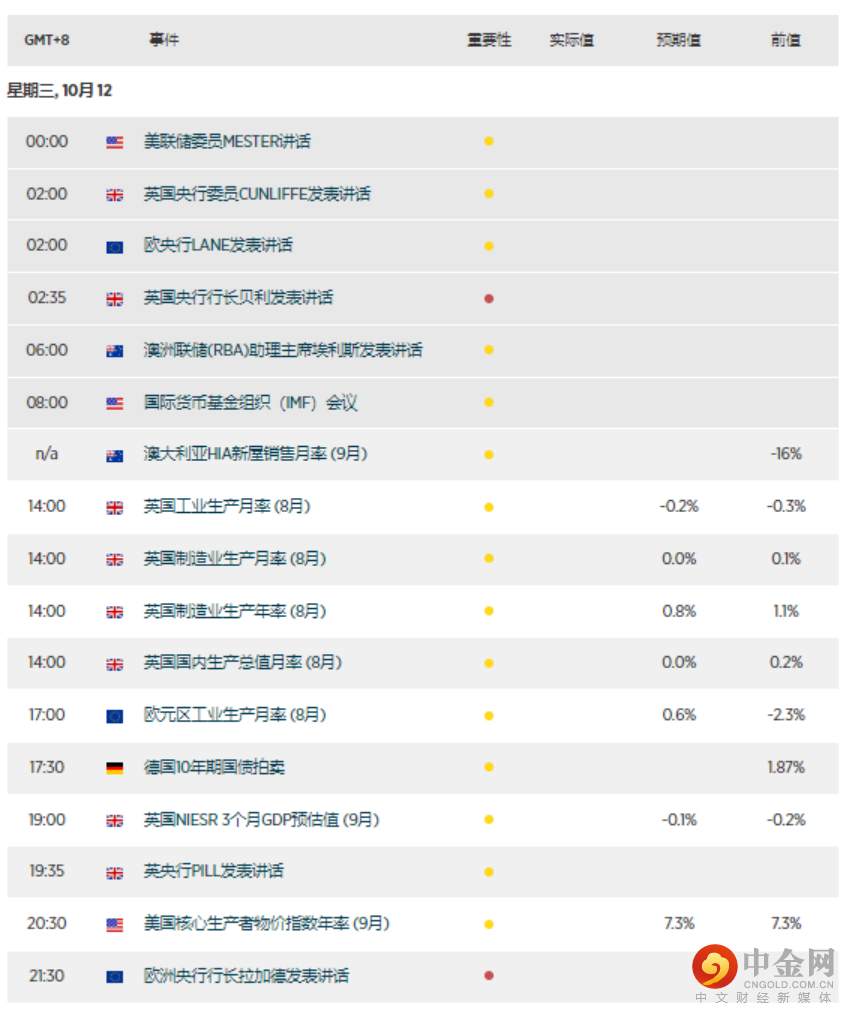 英国继续成为金融市场的焦点。英国央行行长表示临时债券购买计划将于本周五到期,再度打击市场信心。数据方面,英国9月新增就业人口远高于预期,截至8月的3个月失业率降至1974年以来最低的3.5%。但数据并不能掩盖债券市场的动荡,也没能帮助英镑扭转近来的颓势。