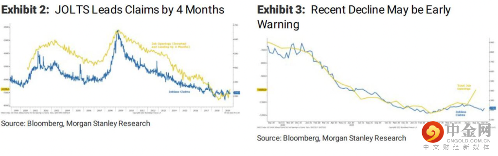 而如果Wilson的预测成为现实,公司将不得不对劳动力采取更大的行动,即裁员。如下图所示,这方面的早期预警信号正在显现,最近的就业机会减少就是明证。