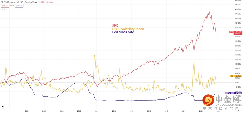 从历史上看,标准普尔500指数在经济衰退期间会下跌约30%,这可能意味着,如果第四季度出现经济衰退,该指数有可能进一步跌至3,200点,较1月份高点下跌33%。下图显示,下行风险仍然很高,波动率指数上升至30以上,而美联储仍处于加息周期。然而,美国股市第四季度系统性崩盘的概率很低。如下图所示,最近的两次危机,2008年的全球金融危机和2020年的新冠疫情,都发生在宽松周期的后半段,而不是在加息周期。简而言之,股市持续一年的抛售反映的是经济增长放缓,而非经济危机。