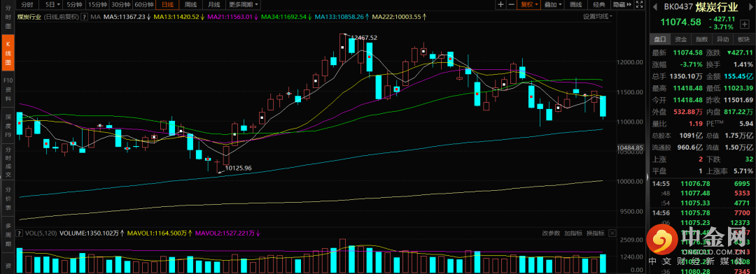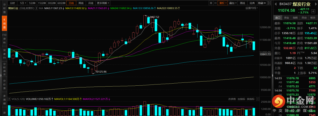 煤炭行业:煤炭今日领跌两市,从消息面来看并没有太多值得注意的,更多的可能性是因为存量结构市场中资金的切换,目前看短期的聚焦点在新能源以及信创上面。不过全球能源问题还没有一个比较好的缓解,煤炭价格也仍处于一个高位,后续仍有反复的可能性,需要进一步观察才能看出中期的走向。